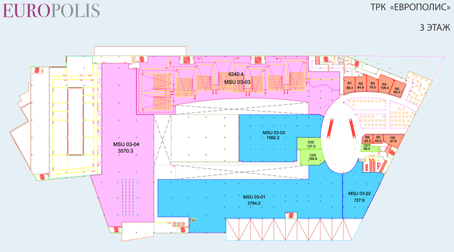 и многие другие. Итого более 160 различных магазинов, общая площадь которых составит порядка 6000 кв. м. Магазины компании Inditex будут занимать около 10% всех торговых площадей ТРК «Европолис».